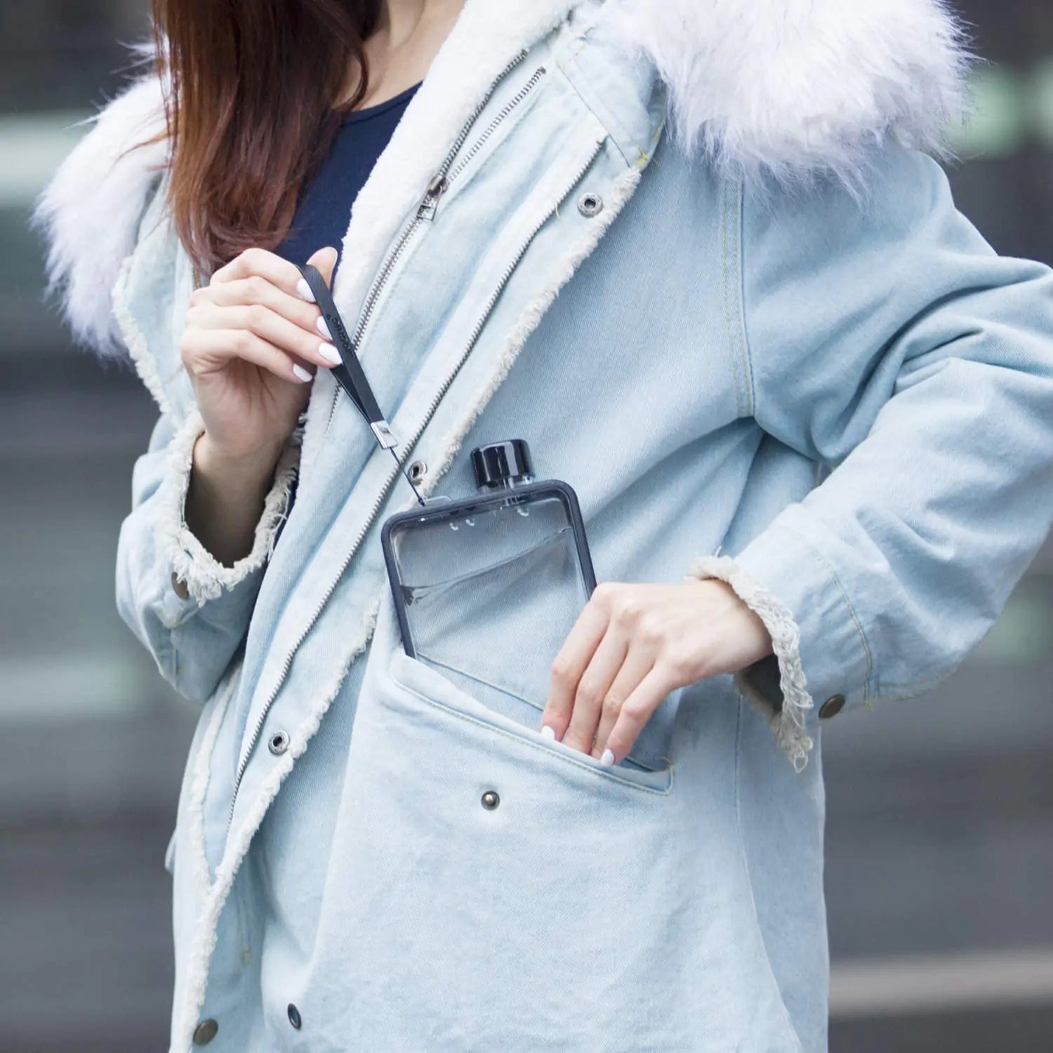 Looking for a new water bottle that's chic, stylish, and practical? Check out our flat water bottle! Ideal for on-the-go hydration, this bottle is perfect for throwing in your purse or backpack. The flat design means it takes up less space than traditional round water bottles, and the built-in carrying handle makes it easy to grab and go. Made with high quality Tritan material, our flat water bottle is durable and BPA-free. The screw-on lid helps prevent leaks, and the wide mouth opening makes it easy to add ice cubes or fruit slices to your water. The380ML capacity is perfect for quenching your thirst without being too bulky, and the cute design is perfect